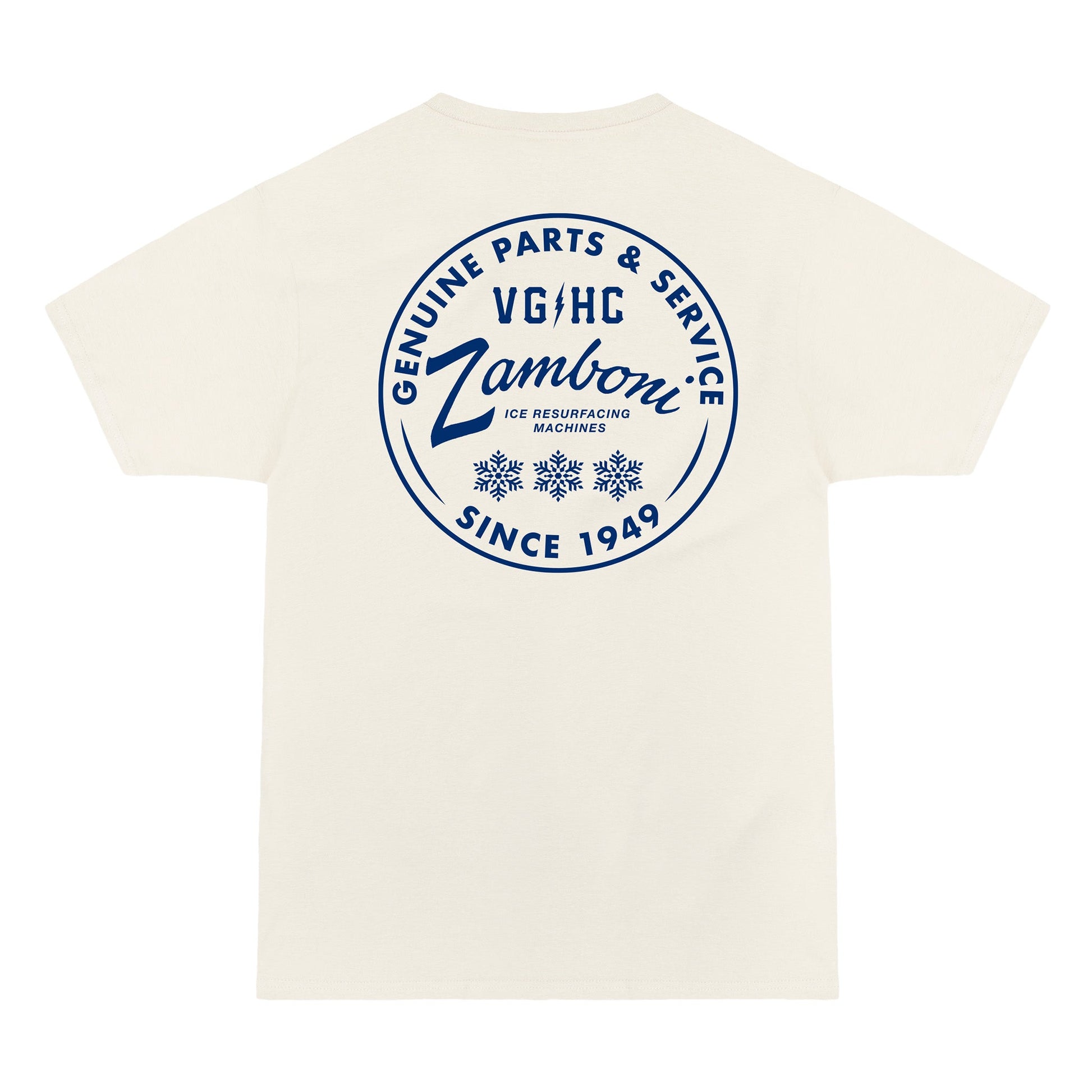 Celebrate the legendary Zamboni ice resurfacer with this exclusive Violent Gentlemen Hockey Club x Zamboni midweight premium tee. Featuring the iconic Zamboni Genuine Parts & Service design, this premium hockey t-shirt pays tribute to Frank J. Zamboni & Company, Inc., the American manufacturer that revolutionized ice maintenance in 1949.