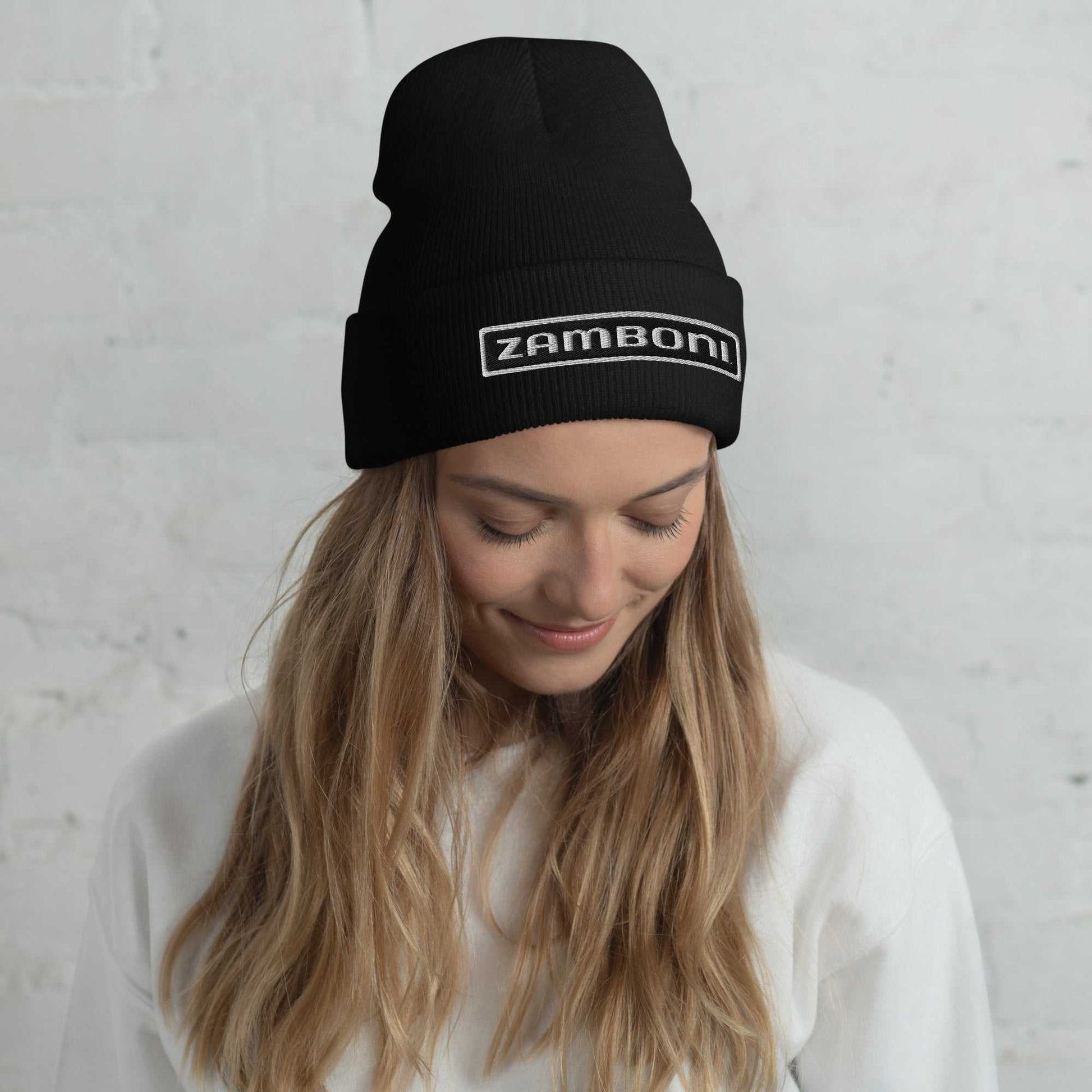 Black Zamboni Nameplate Cuffed Beanie made of 100% turbo acrylic, unisex and snug-fitting accessory